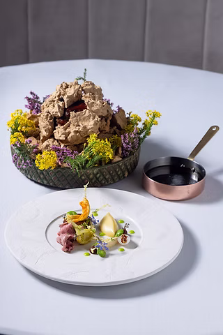 La Colombe constructs its vegetarian offering as a standalone narrative, with the kitchen seamlessly adapting courses for vegan guests. The progression unfolds through carefully orchestrated plates that showcase technical precision and layered flavors.