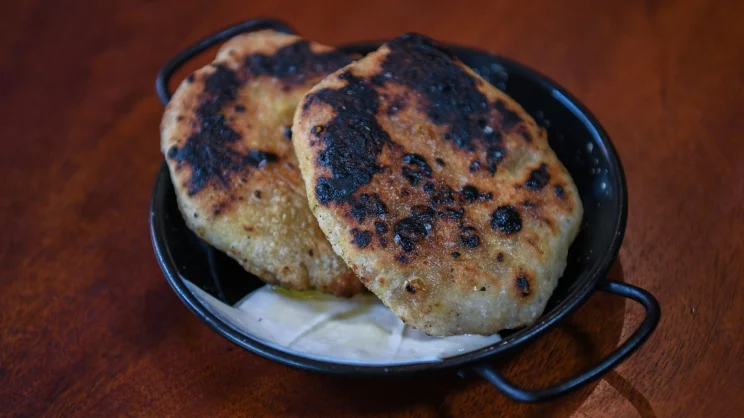 The seitan-based take on charcoal chicken demonstrates technical ambition: the wheat gluten substitute is compressed in marinade for forty-eight hours before grilling and finishing with hot, spicy harissa. The extended marination allows flavor penetration that justifies the effort. Soft tacos piled with spiced jackfruit genuinely resemble shredded meat and deliver substantial chili heat, while milder versions feature button mushroom slices, corn and nopales (prickly pear cactus).
