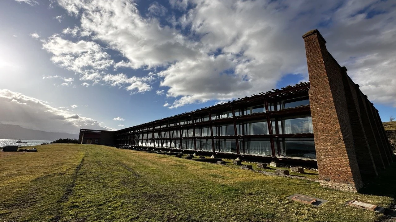 We arrived at The Singular Patagonia, a national monument transformed from a 1915 cold storage plant into a design-forward hotel. This architectural conversion pairs exposed brick and preserved Victorian machinery with contemporary interiors, positioned along Last Hope Sound fjord in Puerto Natales.
