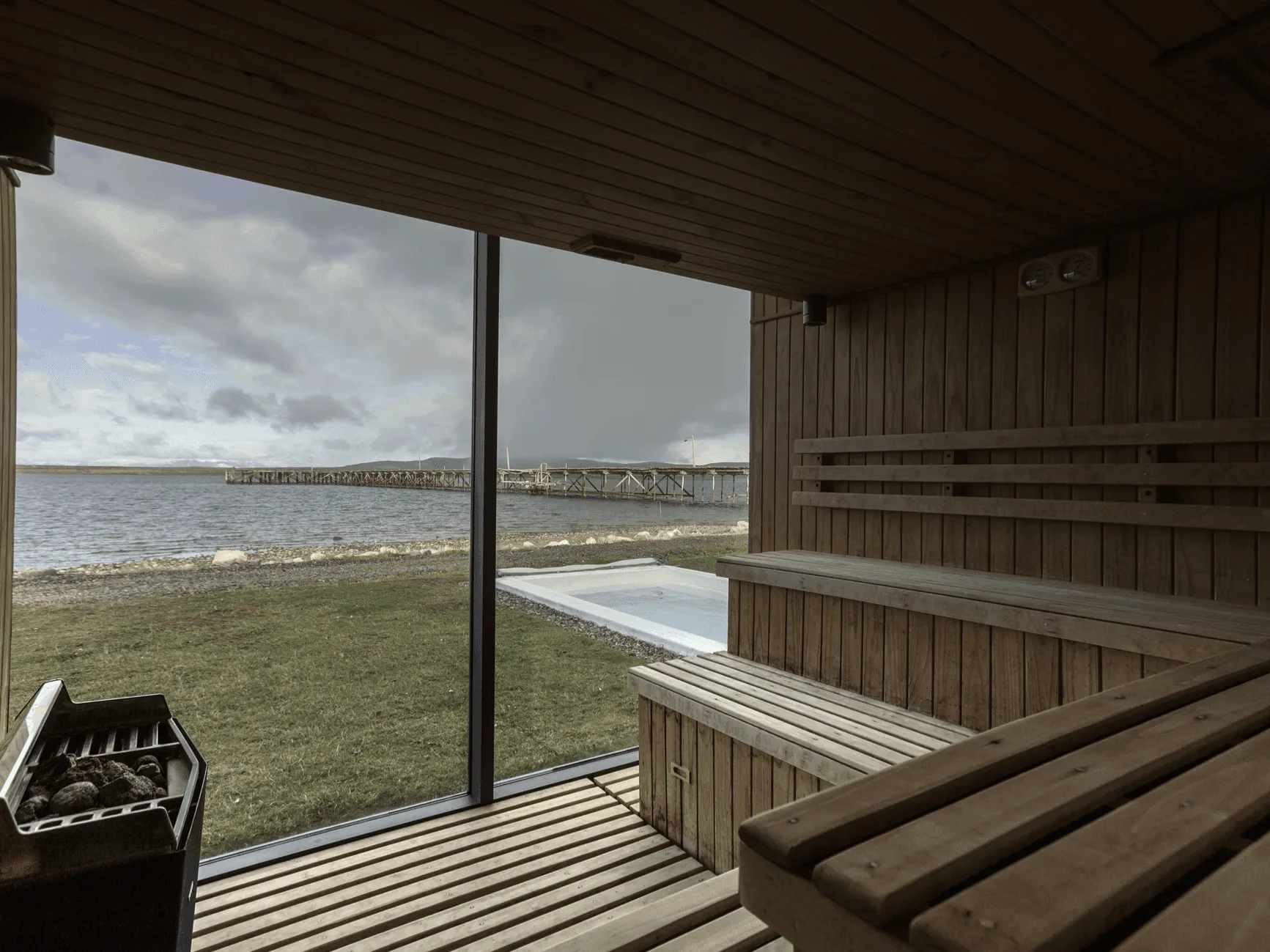 We spent each afternoon moving between the thermal pool, swimming beneath a glass partition to experience Patagonian wind while remaining in heated water, and the sauna overlooking Last Hope Sound. The pool accommodates contemplative soaking rather than lap swimming.